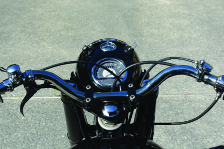 On his first ride after the restoration, Derek parked the AJS on a neighbor’s driveway that had a slight downhill slope. As he was dismounting, the AJS rolled forward on the sidestand. “I caught it before it hit the ground. But it was that close,” he says. Now he only ever parks it on the centerstand.