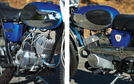It is now over 50 years since production ceased, but parts availability is remarkably good, considering that Bridgestones were never top sellers. There are several online clubs devoted to Bridgestones, and information can be found — it just takes a fair amount of work. A good percentage of the four years before the restoration of this TMX was complete was taken up in research on the machine. Luckily, the 350cc Bridgestone is a popular vintage racer, which keeps the websites humming and the parts sellers in business.