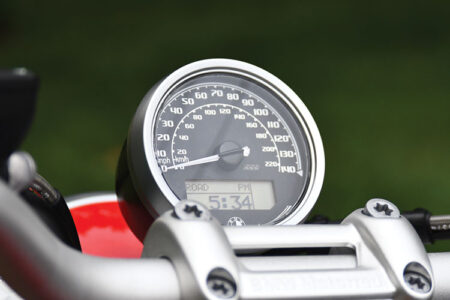 BMWs haven’t always shifted smoothly (correct technique is essential on older models), but this gearbox does, and the gear ratios are nicely spaced. But what’s nicer still is the engine’s complete lack of fussiness. Drop the revs and accelerate in a high gear, or twist its tail in a lower gear and rocket to the rev limiter — the engine simply doesn’t care. Because torque. And that’s a great advantage of many large-displacement twins, whether they’re from Bavaria or Bologna, Lake Como or Milwaukee, Hinckley or Hamamatsu.